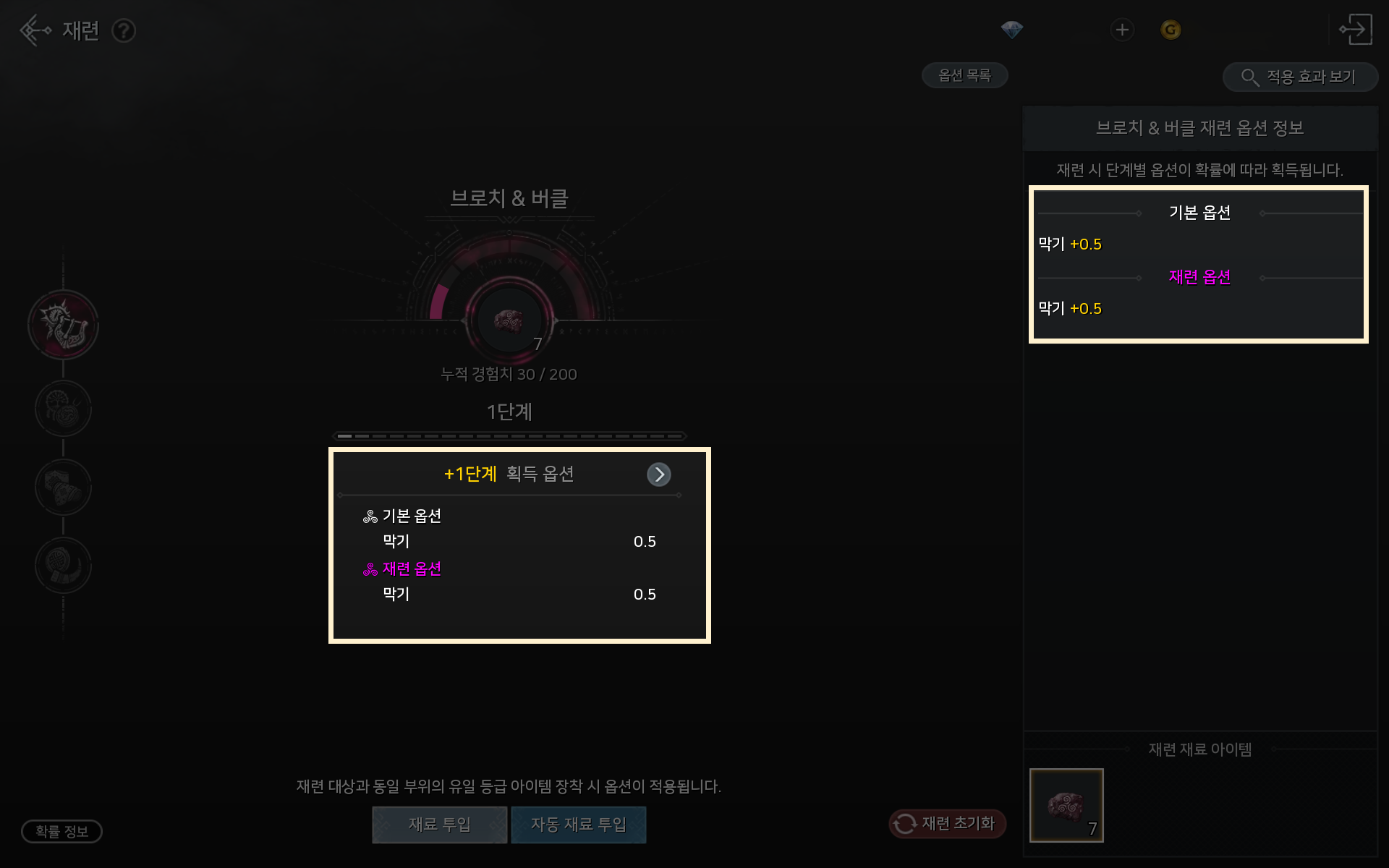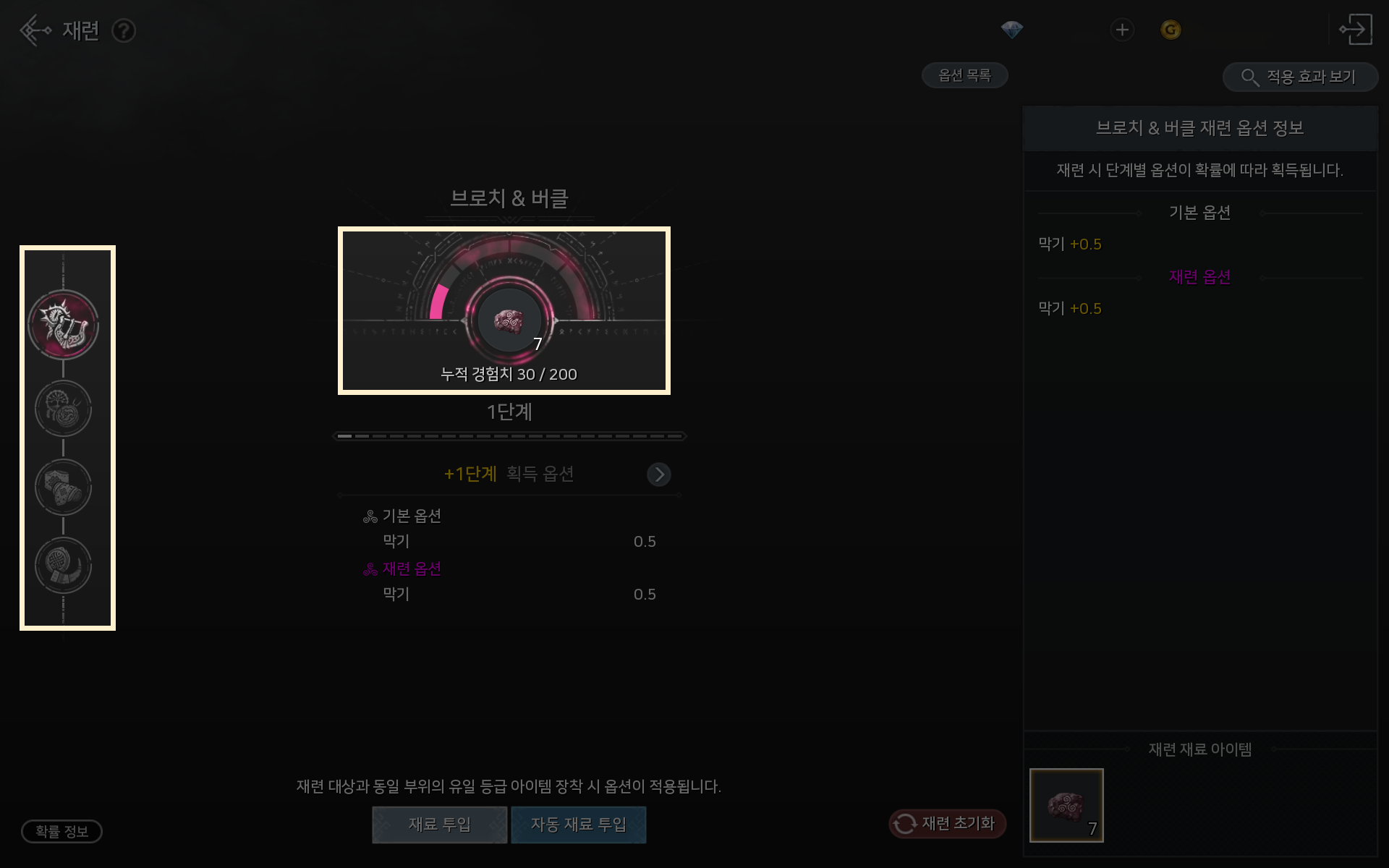 - 當你達到最大累積經驗值後,你將無法再投入材料,但在嘗試重鑄後才能再次投入材料。