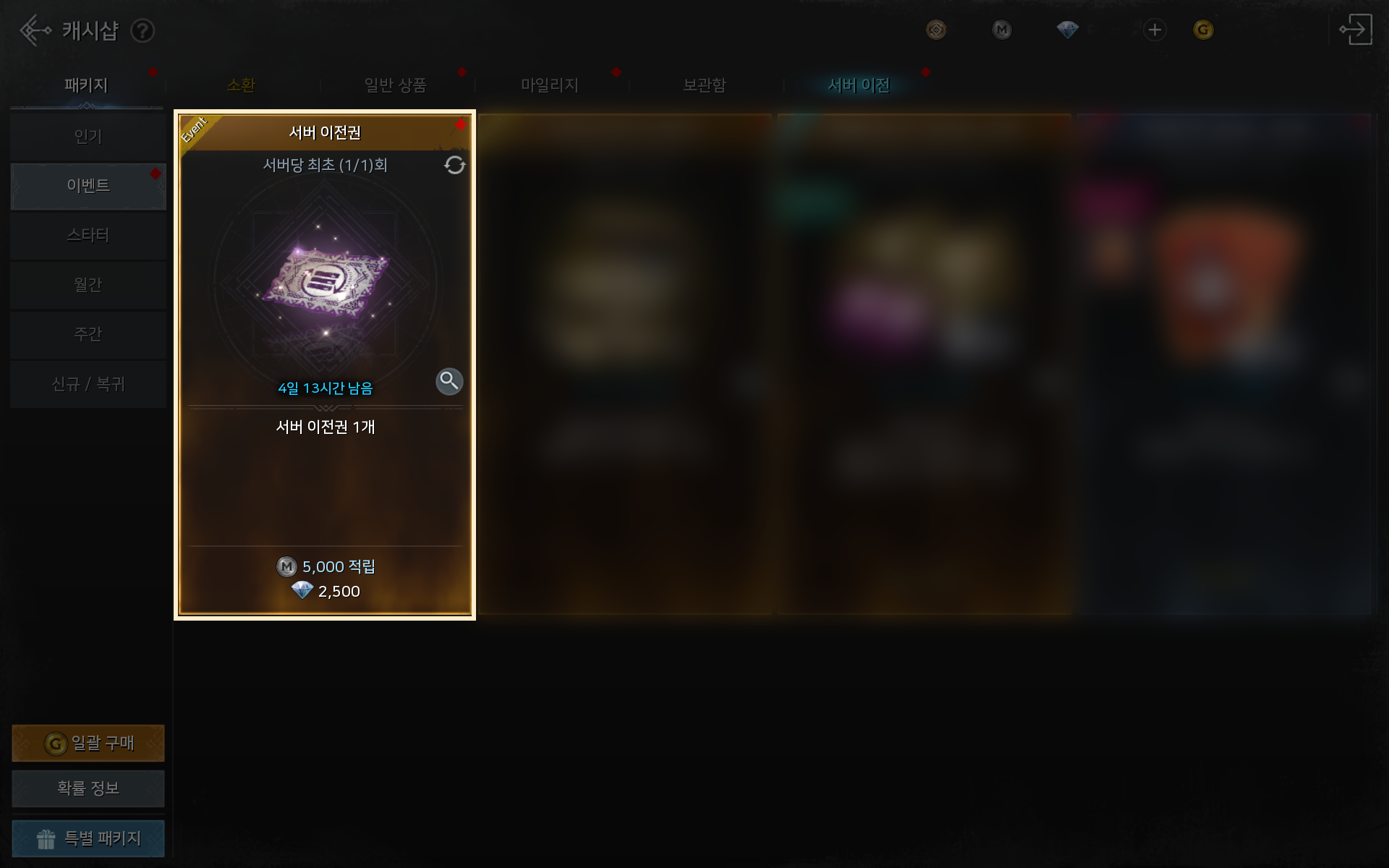 | 套餐(月度商店) | 【月刊】月光珠寶 Step Up II 第一階段 | 鑽石 8,000 | 每台伺服器 每月一次 |