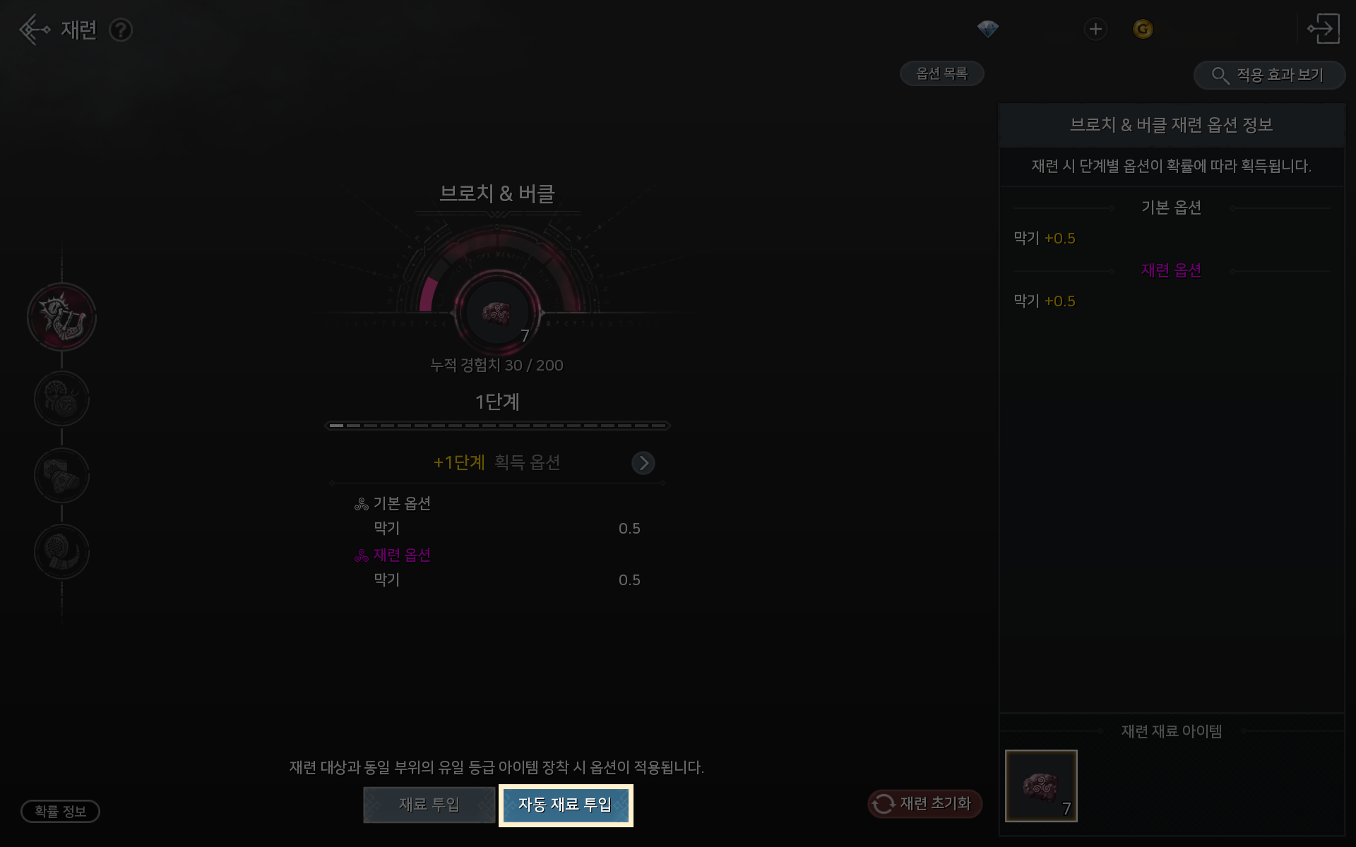 - 選擇【自動材料輸入】後,重鍛經驗將自動增加。
