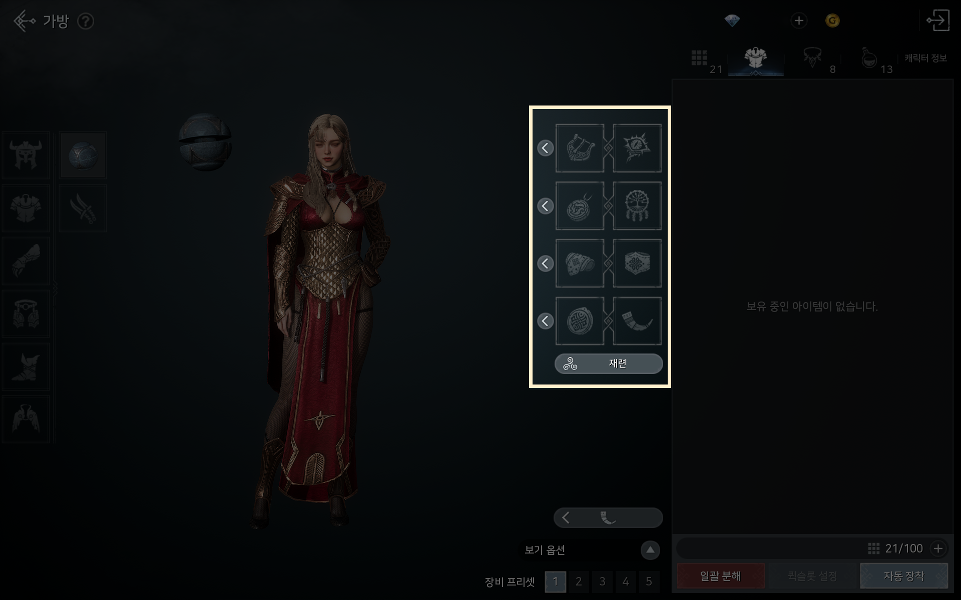 - 您可以透過在【角色資訊】或【背包】的飾品欄 UI 底部選擇【重鑄】按鈕來重鑄飾品。