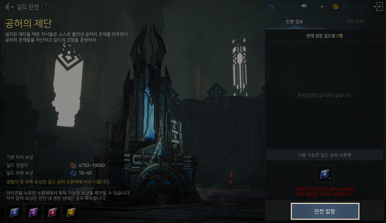 - 您可以透過 [公會 - 公會地下城] 標籤中的「虛空祭壇」來創建和進入地下城。