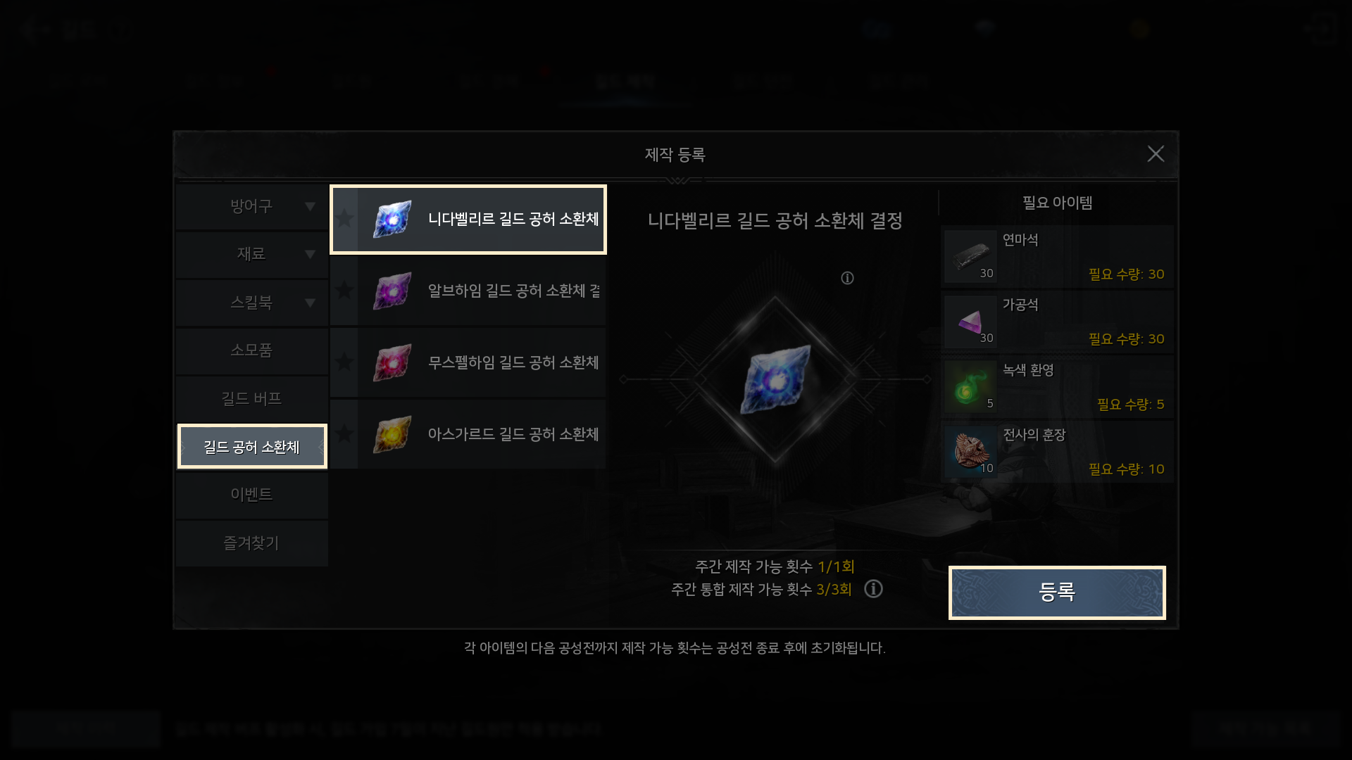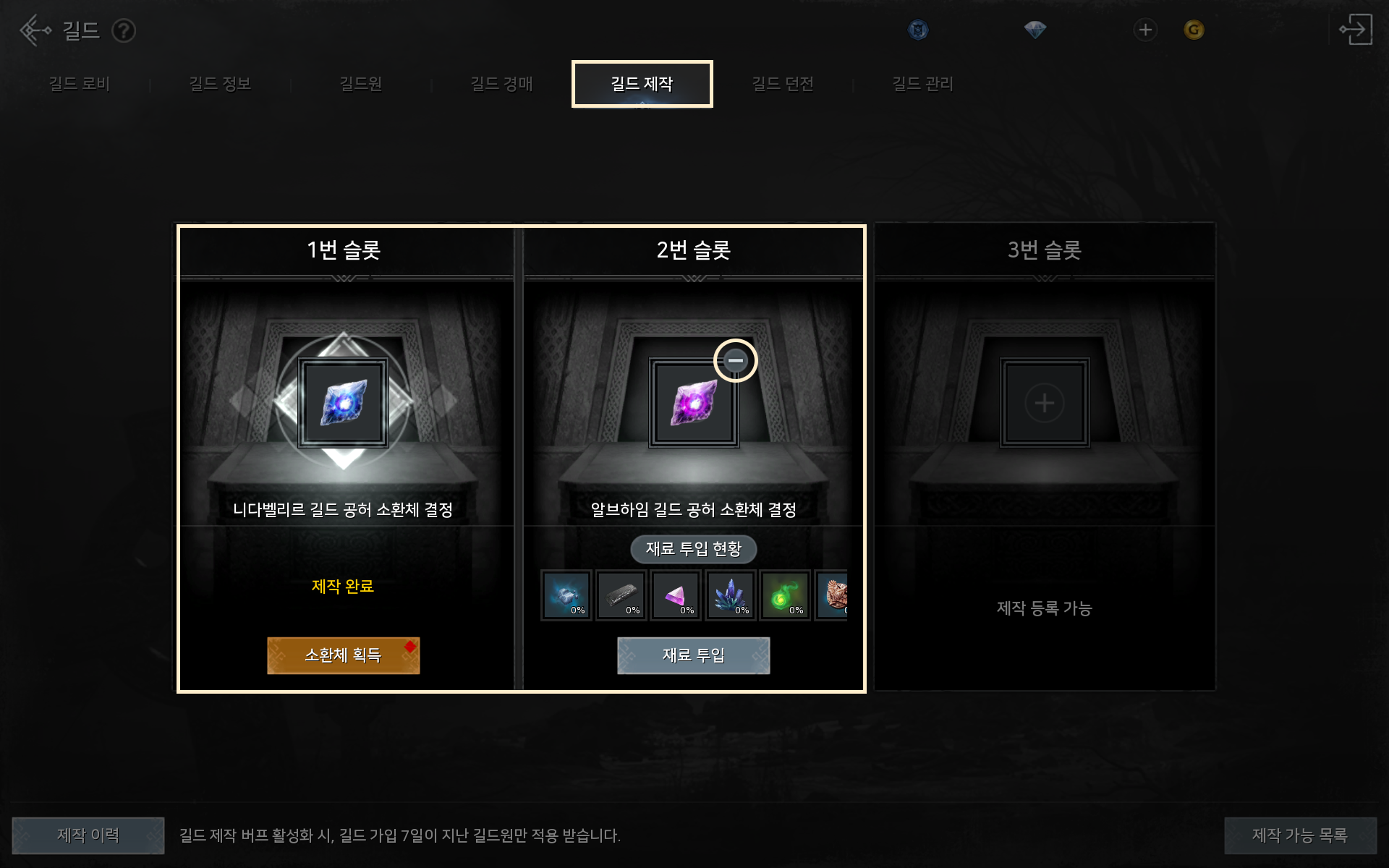 - 公會虛空召喚師水晶每週每種類型可製作一次。